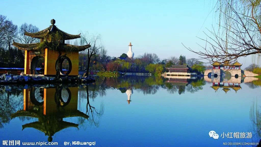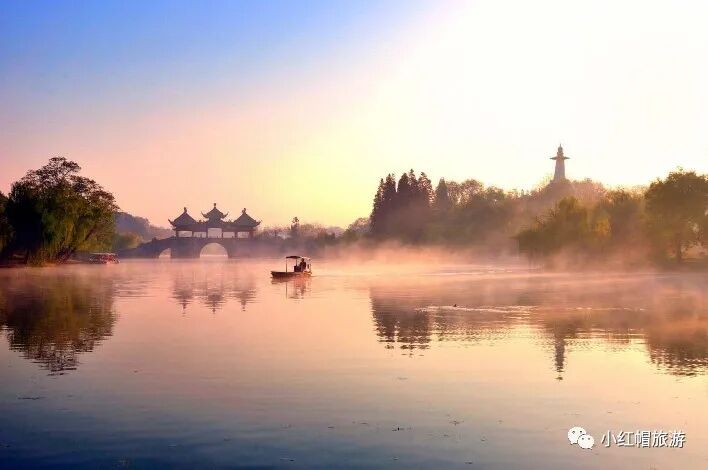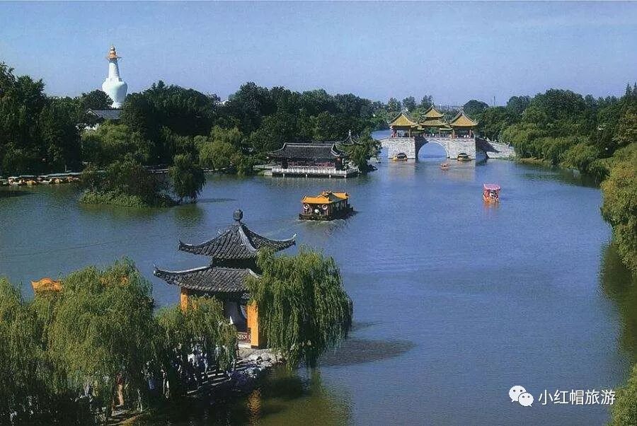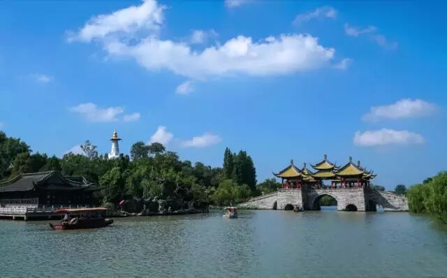 扬州瘦西湖---两岸花柳全依水,一路楼台直到山。湖长十余里,犹如一幅山水画卷,既有天然景色,又有扬州独特风格的园林,是国内著名的风景区。