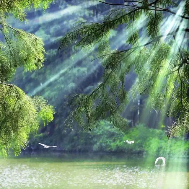 阳光透过树叶间的缝隙斜斜的洒落下来